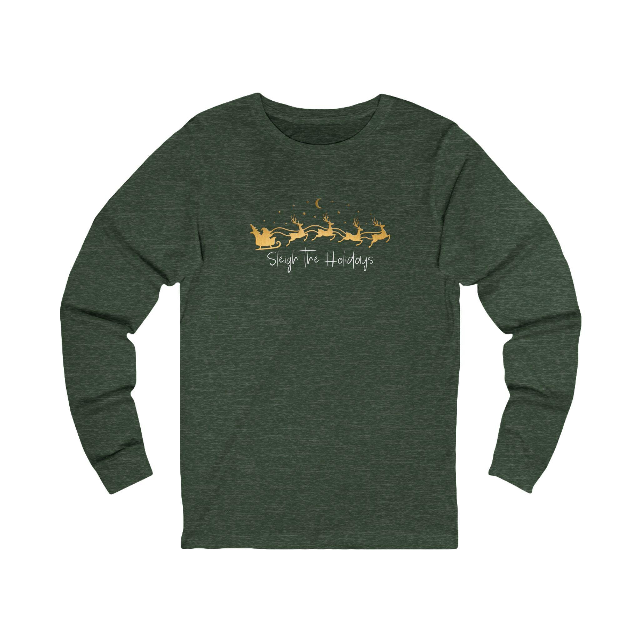 Introducing our Sleigh the Holidays Unisex Jersey Long Sleeve Tee, perfect for a laid-back day or enjoying a festive gathering. This shirt brings a relaxed vibe and can easily become a staple in your wardrobe. Whether you're lounging at home or getting together with friends, its soft fabric ensures comfort all day long. Ideal for anyone looking to express their love for the holidays, this tee makes a great gift for friends and family during seasons of celebration. Perfect for winter holidays, cozy family gatherings, or as a thoughtful present for birthdays and other milestones, this comfortable tee is a versatile addition to your outfit collection.